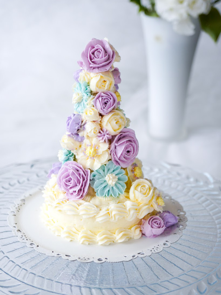 フラワーケーキとは、クリームなどをお花の形に絞ってケーキをデコレーションしたもの。